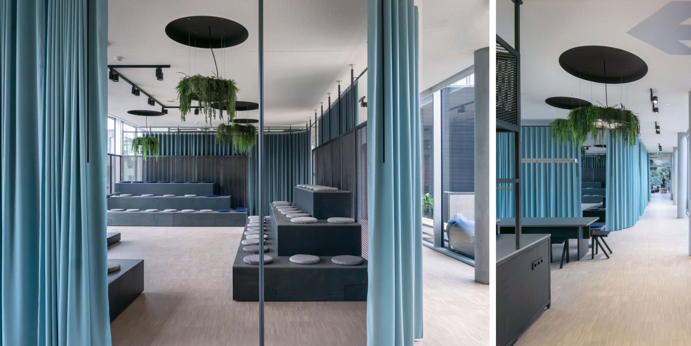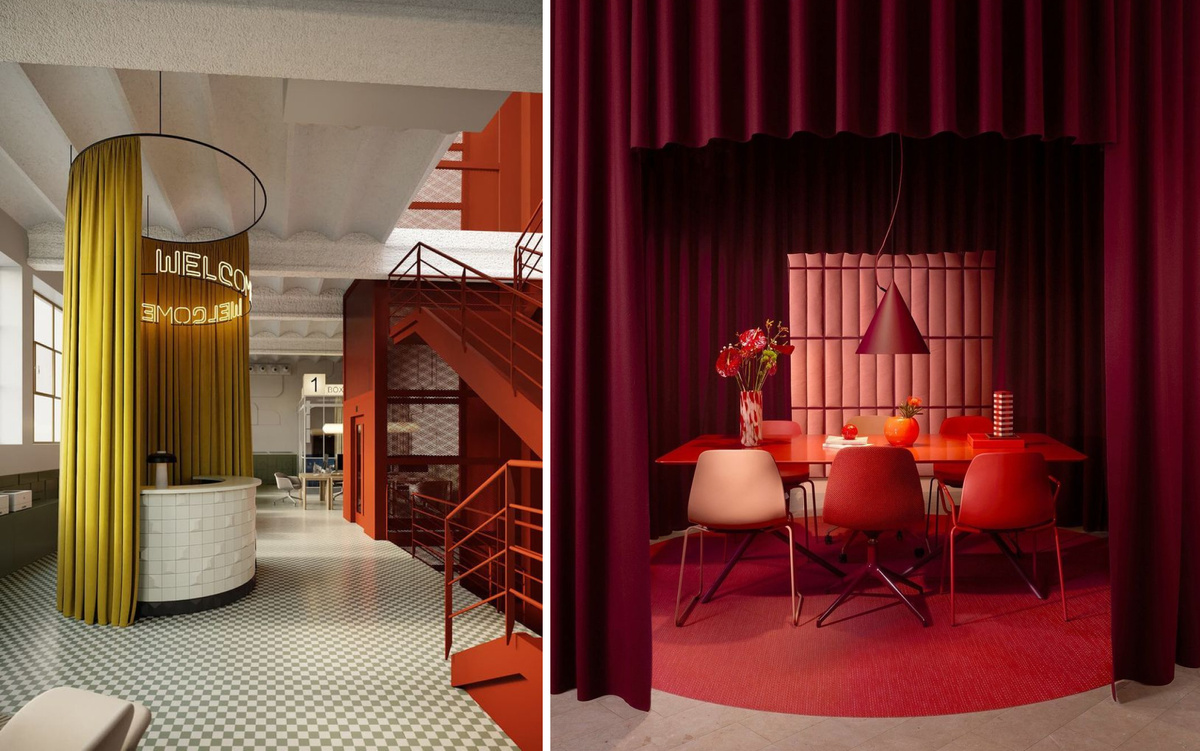 Текстильное и акустическое зонирование интерьера в офисе в Берлине. Création Baumann. Фото: Margis Peter.