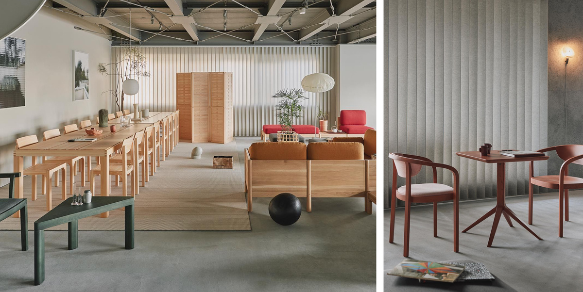 Шоурум японской компании Karimoku. Acoustic stripes by Création Baumann. Фото: Masaaki Inoue.