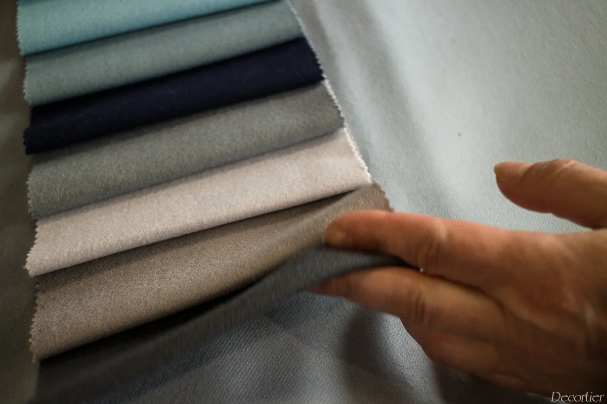 Невозможно сосчитать и перечислить все варианты шерсти и кашемиров, которые есть в коллекциях Holland & Sherry: это и 100% шерсть, и фланелевая шерсть, и кашемир+шелк, шерсть со льном для обивки. Многие ткани имеют реверсивный окрас.