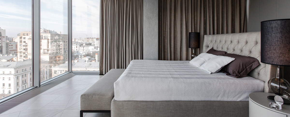 • Автоматизация по сценариям — от утреннего пробуждения и полного открытия штор до сохранения частичного затемнения благодаря нескольким линиям, на которых размещены изделия (тюль, портьеры).