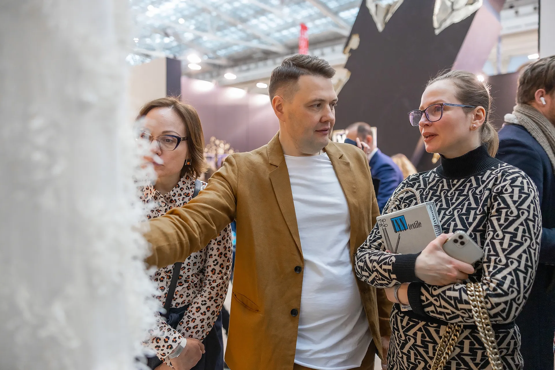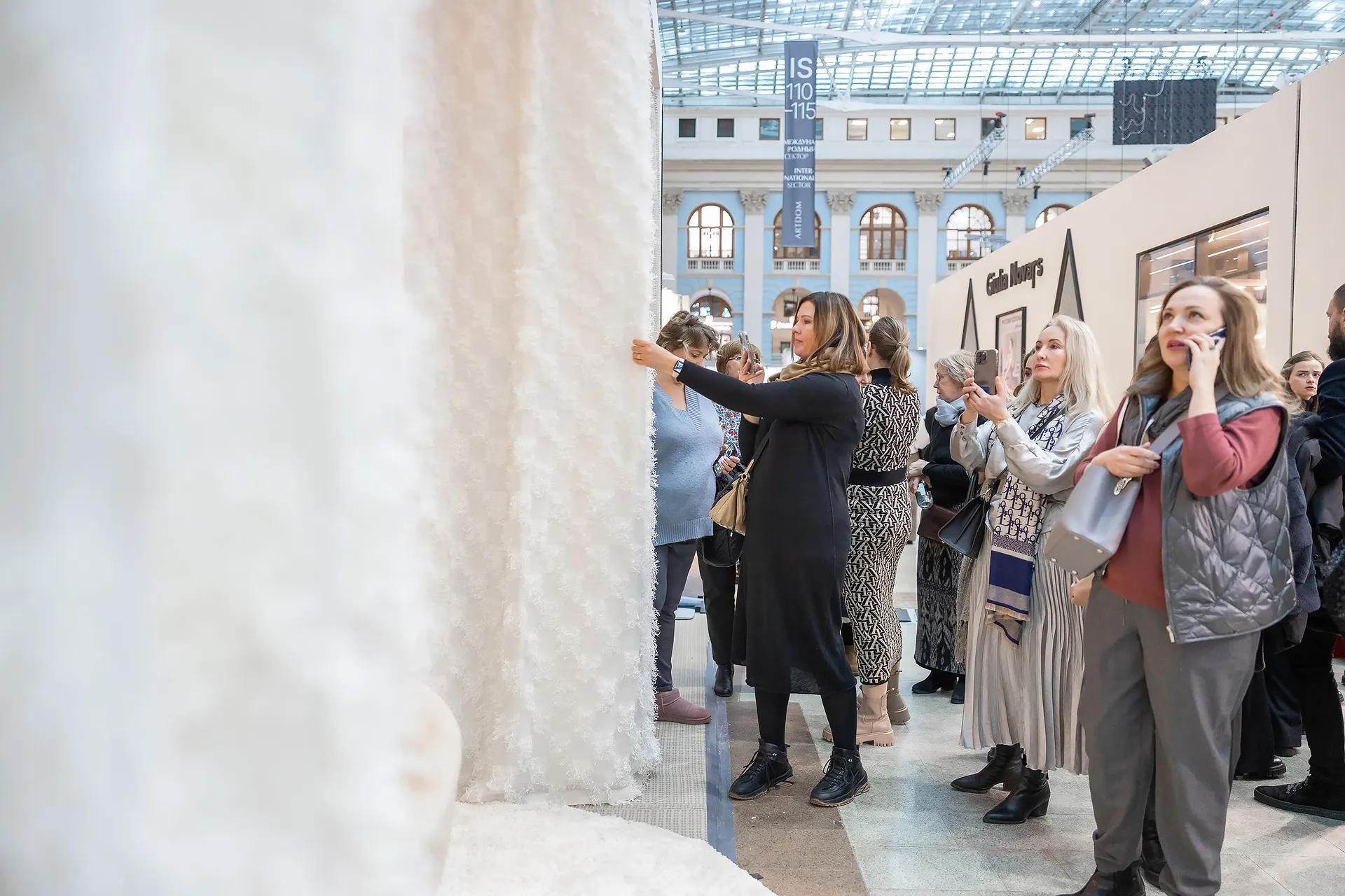 В первый вечер, когда мы все монтировали, меня поразил масштаб выставки. Люди целые квартиры выстраивали на стендах. Но в итоге мы тоже смотрелись эффектно. И ещё сыграло на руку то, что мы единственные были исключительно с тканями. Первый испуг от масштаба выставки обернулся скорее приятным удивлением. Масштаба не по размеру, а по качеству, по визуальной и смысловой нагрузке. Профессиональное сообщество воспряло после первого шока от санкций. Мне тоже было интересно прогуляться, посмотреть что-то новое.»