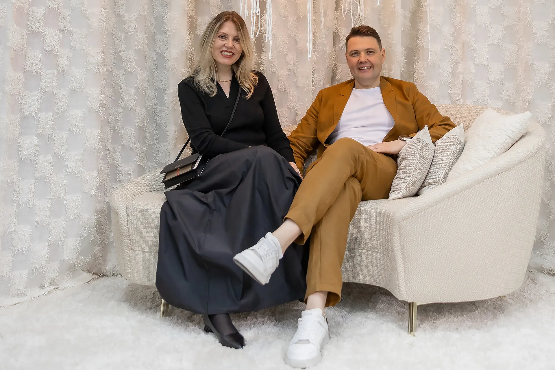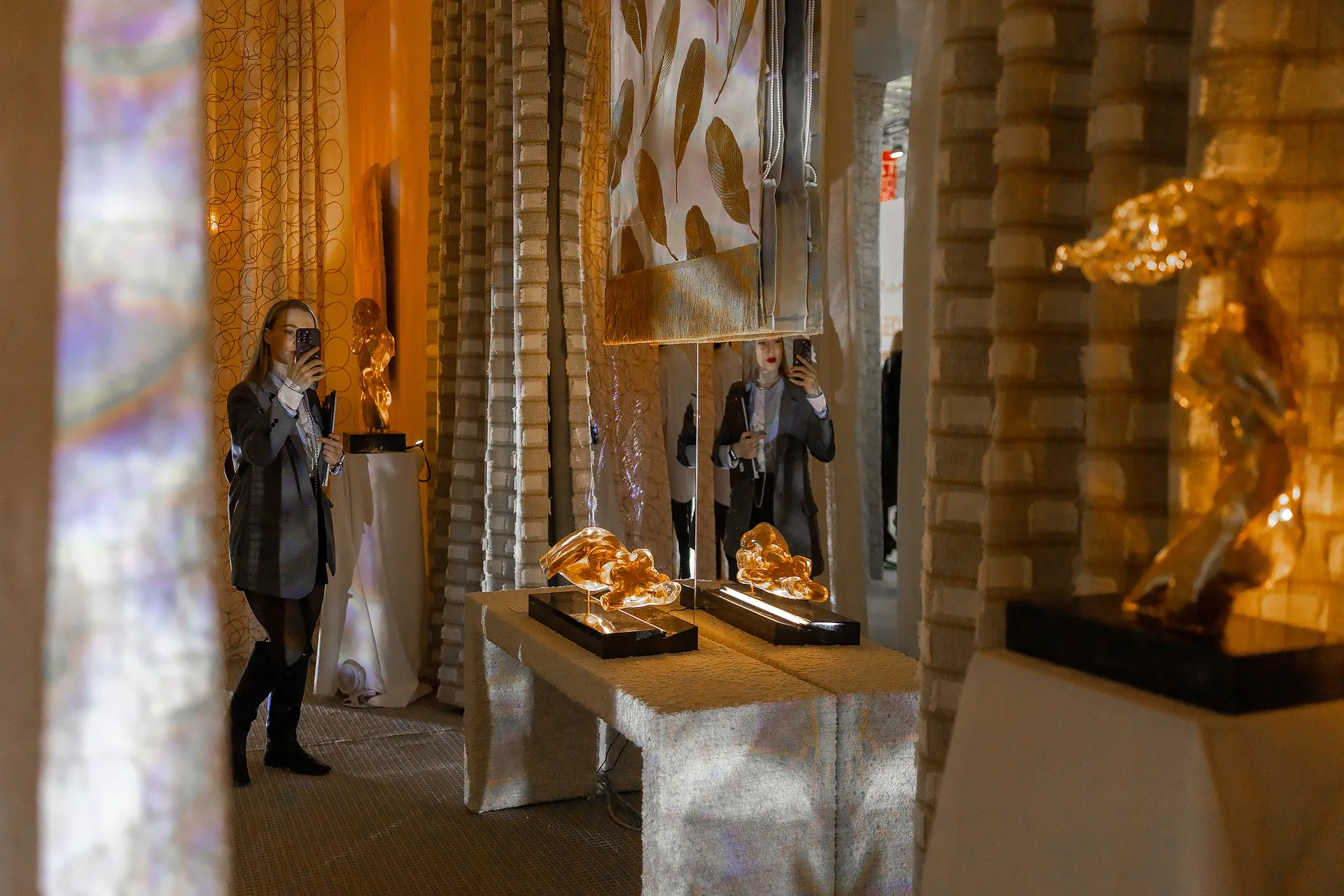 Когда мы закончили, посмотрели на свой стенд и на другие, которые были представлены, и загрустили. Giulia Novars напротив возвели целую квартиру, вложили около 27 миллионов в стенд. Мы боялись, что будем выглядеть тускло. Бежевые ткани, яркое освещение. Включаешь его — и ты как в больнице. Но когда началась выставка, мы выключили свет, включили проекторы, пустили дым и выдохнули, потому что увидели, какое сильное впечатление на посетителей производит эффект, который получился.
