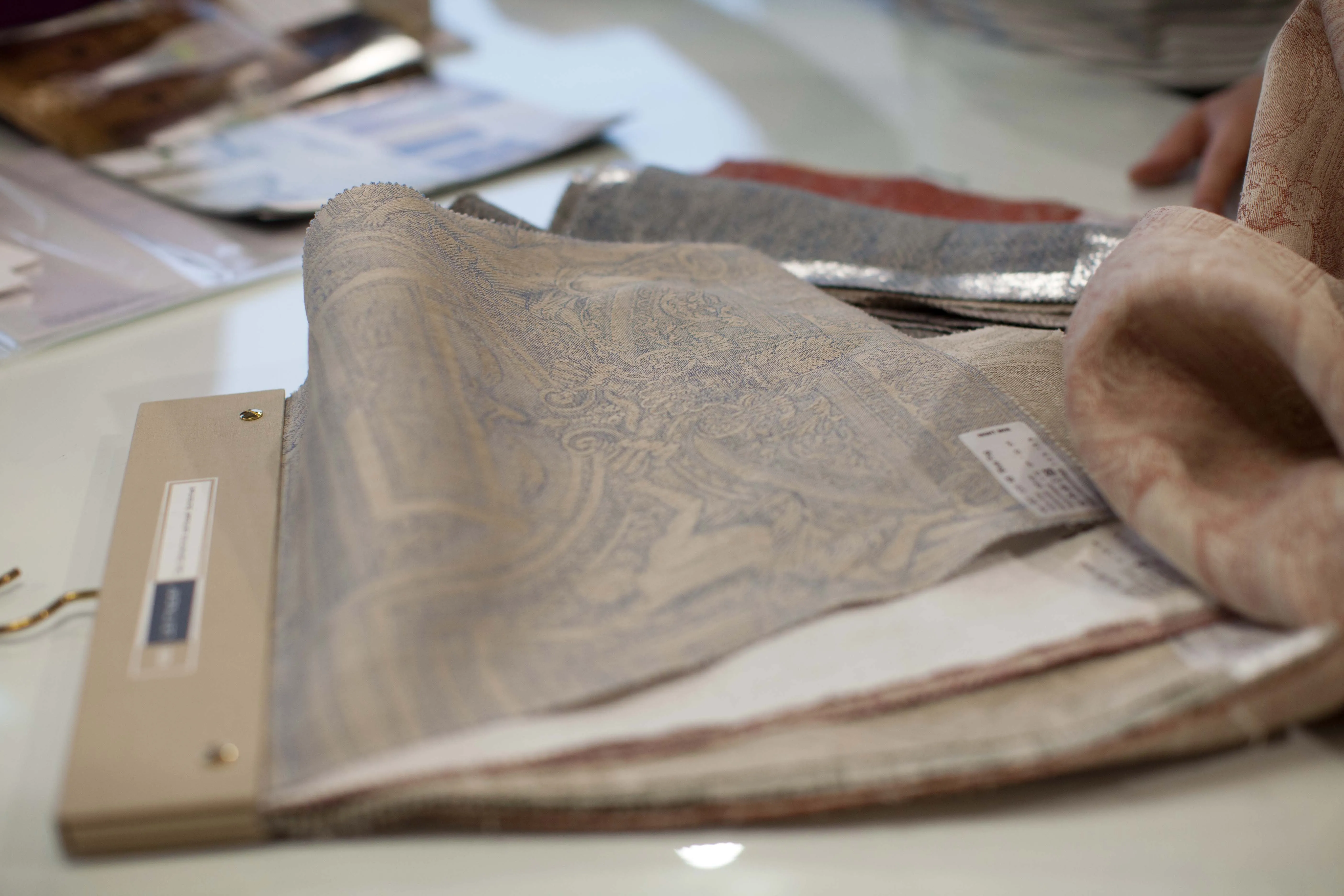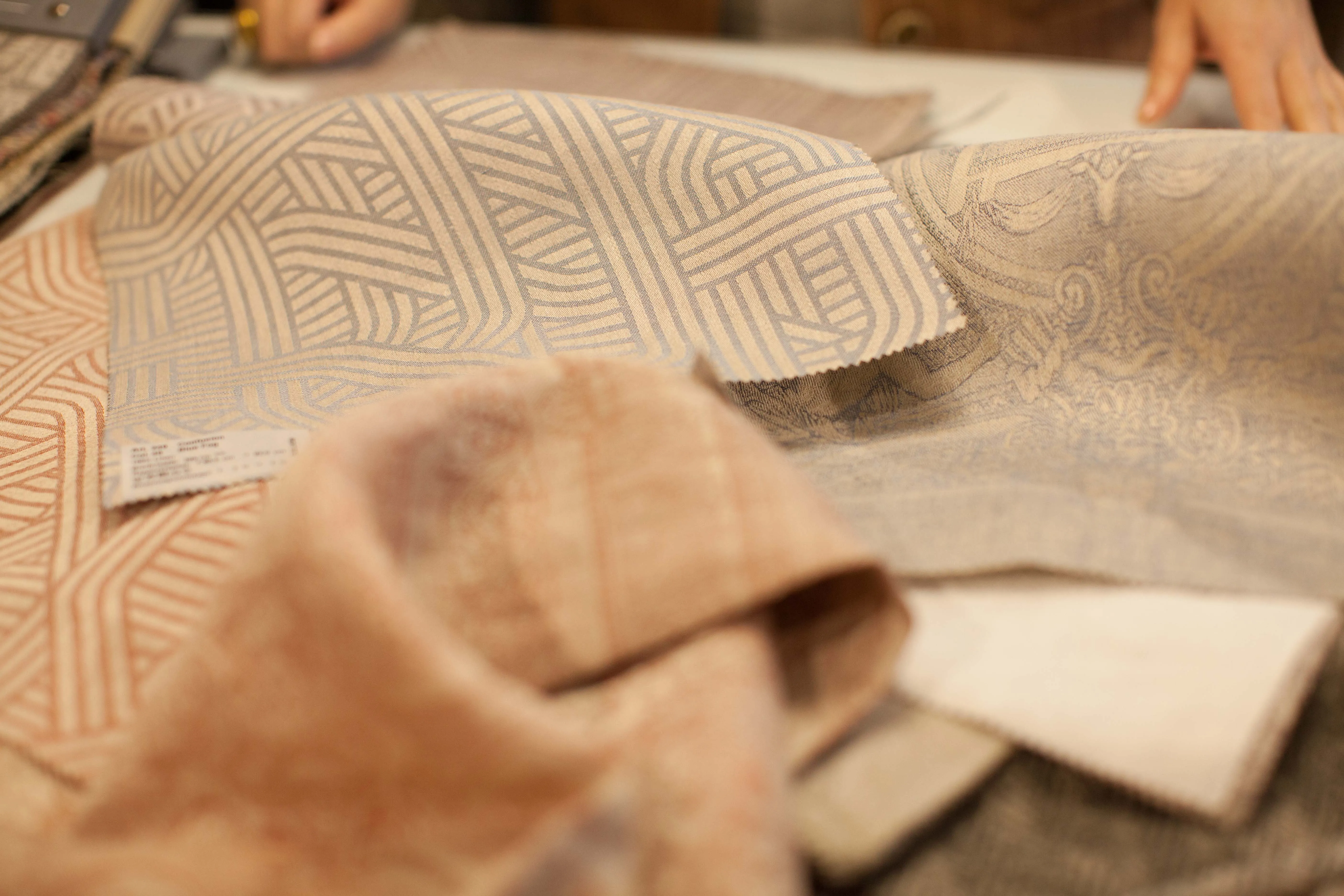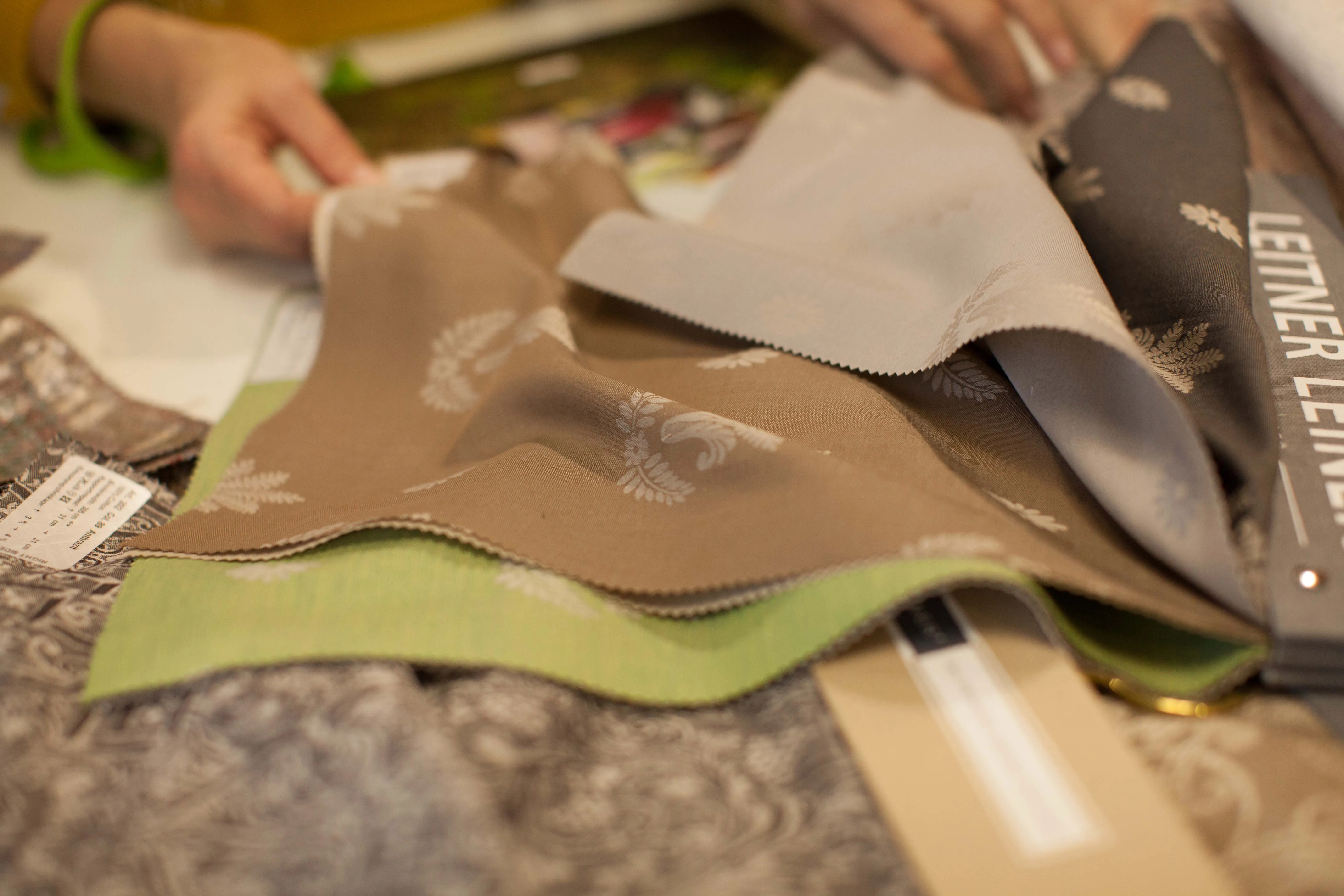 Остановимся подробнее на тканях. Ткани Leitner отличаются своими сдержанными пастельными тонами. Изысканные дизайнерские мотивы: богемные, винтажные, жюи прекрасно сочетаются со стильными полосками и сотканными под рогожку льнами.