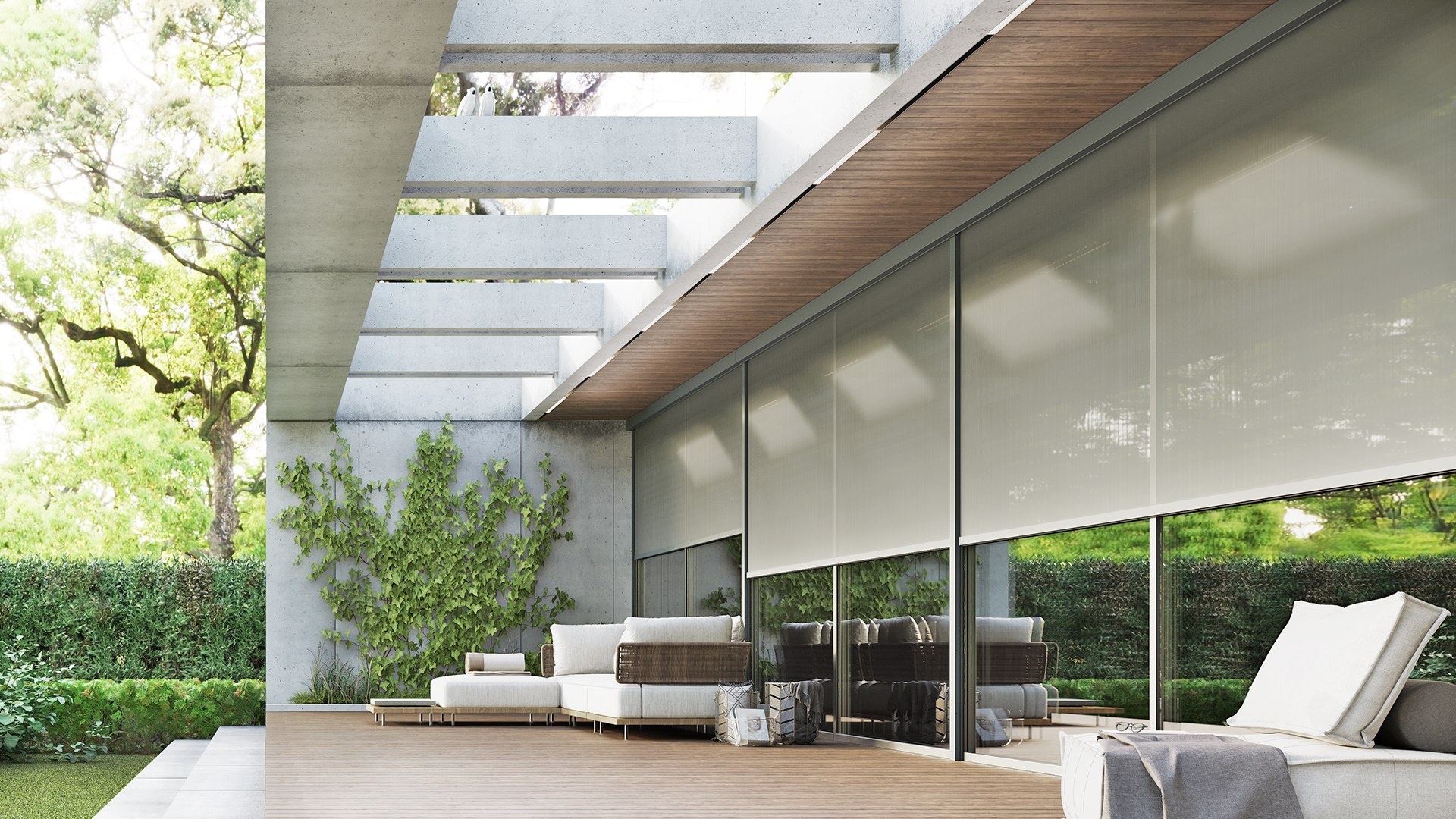 Результат — чистое, функциональное и технологичное пространство, где солнцезащита становится естественной частью архитектуры.