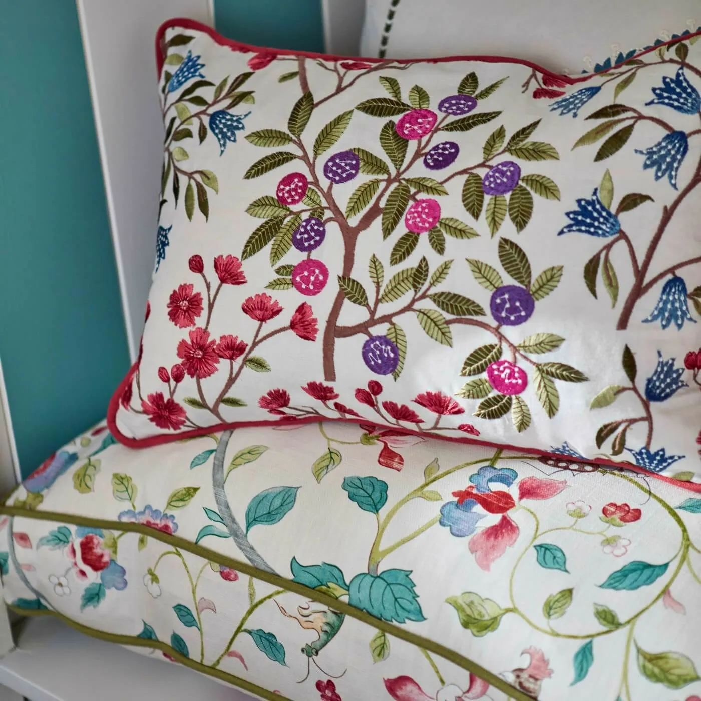 Волшебная интерпретация старинной лесной сцены, Forest of Dean создана с помощью ручной вышивки crewel на красивом 100% льне. Рельефная строчка и матовая нить подчеркивают наивную эстетику дизайна в виде оленей, папоротников и бабочек.