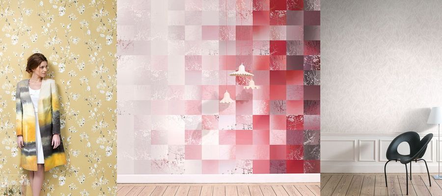 На поверхность обоев нанесены изумительные по красоте, нежные растительные рисунки: цветущие ветви, тонкие деревца, фактурные листья на имитации текстиля и замши. Дизайны выполнены в фирменном и узнаваемом стиле Khroma, который отличается изяществом исполнения, проработкой узоров и безупречной цветовой гаммой. В коллекции также можно найти уникальные панно с эффектом градиента.