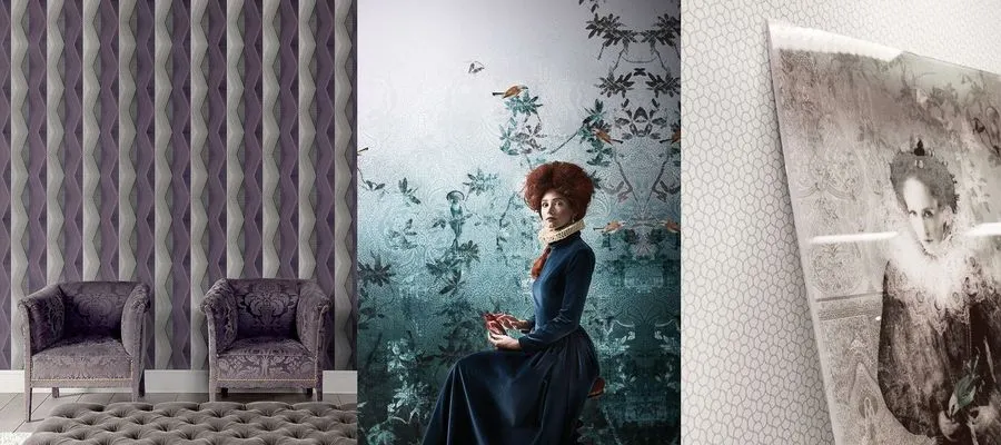 Тема современной классики звучит на полотнах с завитками, дамасками и полосами из ажурных медальонов. Изображения нанесены на флизелиновое полотно флоком с детальной точностью и напоминают неповторимое бельгийское кружево.