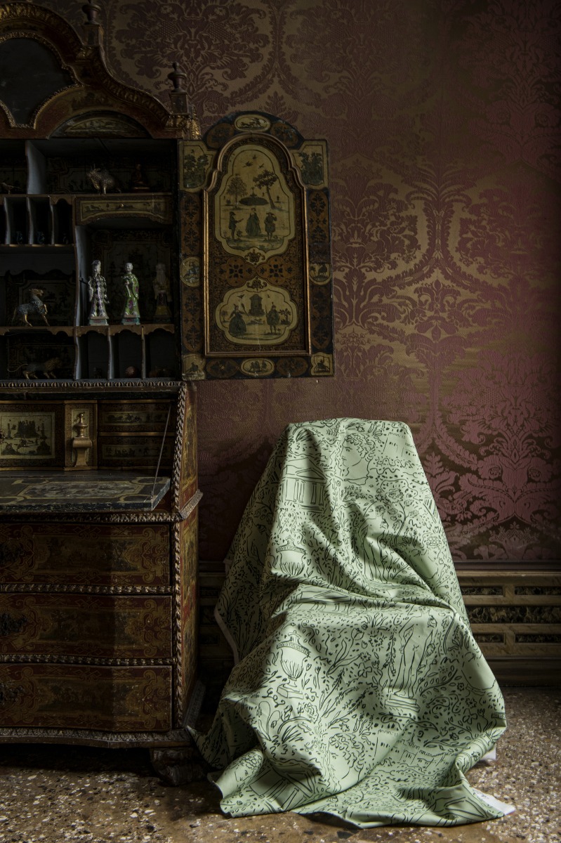 На этот раз награда досталась коллекции тканей, созданной для Рубелли молодым английским дизайнером Люком Эдвардом Холлом, чье эстетическое видение питается магией, любопытством, классикой, идиллическими пейзажами, цветом, эксцентричностью.