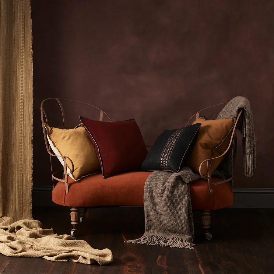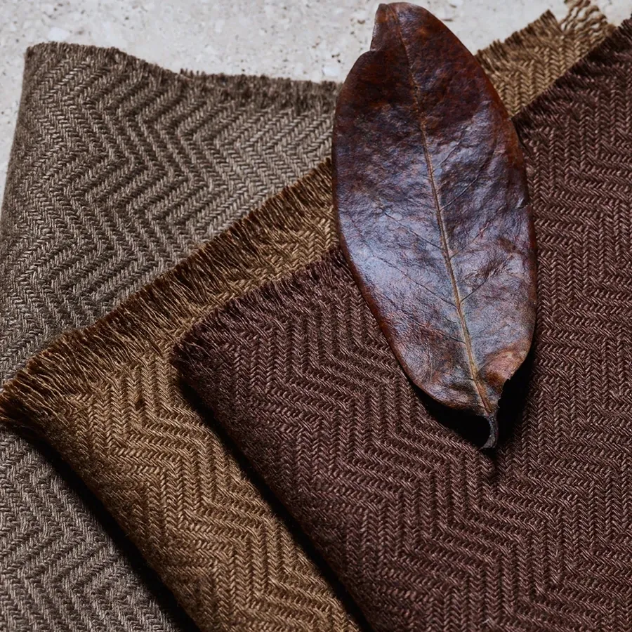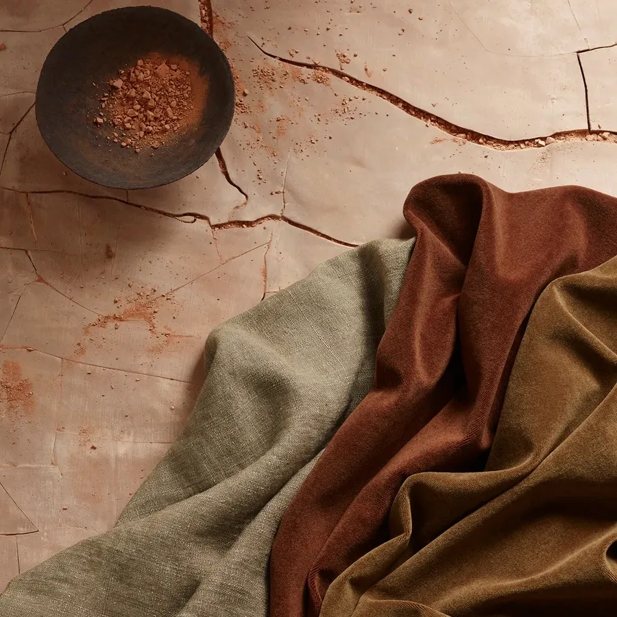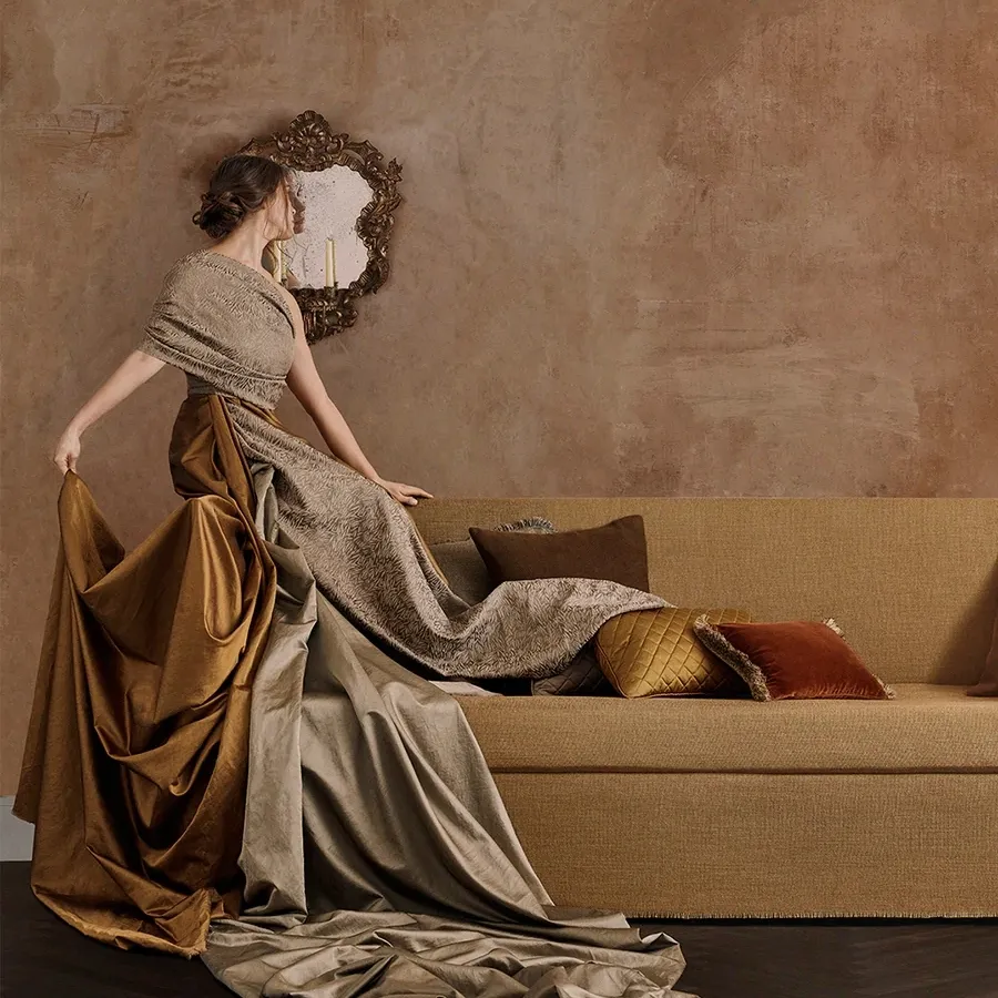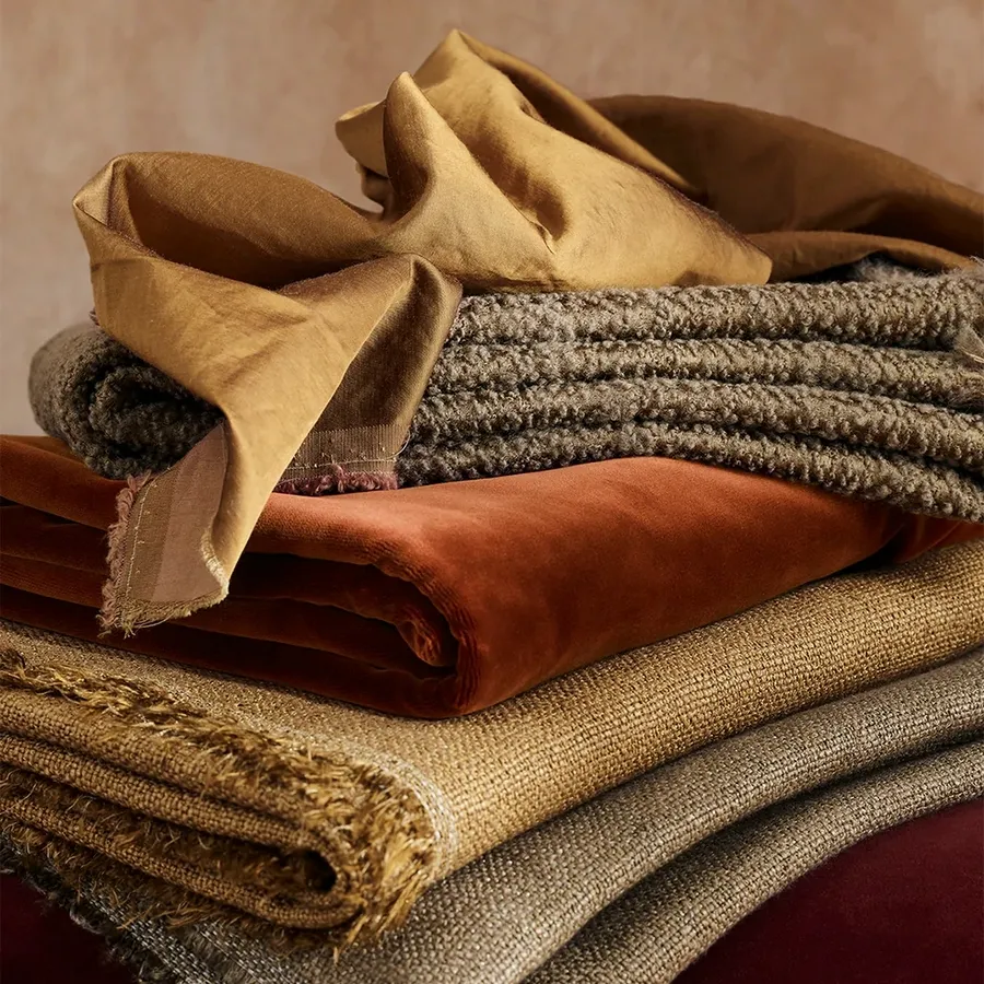 Цвет также связан с текстурой и отделкой. Ткани сочетают в себе изобретательные структуры из льна, шерсти и кашемира. Новая палитра роскошна и сбалансирована богатыми акцентами. Кашемировый бархат переходит в роскошное царство драгоценных тонов с топазом, огненным опалом, рубином, кварцем, ониксом и аметистом. Мериносовый бархат имеет насыщенные оттенки, вдохновленные изобилием природы.