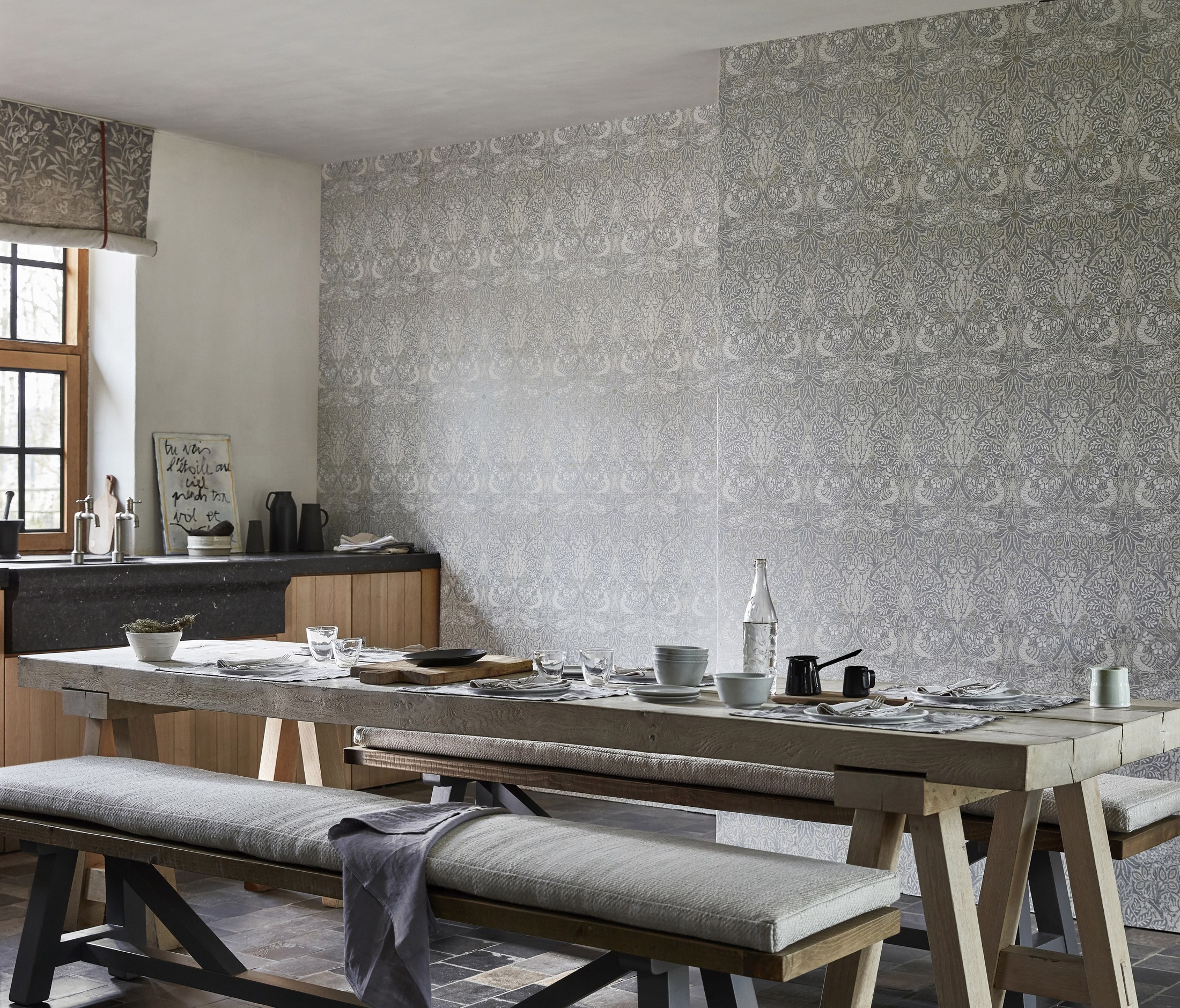 В 1871 году Уильям Моррис путешествовал по Исландии, записывая в дневник свои впечатления. Его записи, покорив сердца сотрудников дизайн-студии Morris & Co, легли в идею создания Pure Morris North & Kindred. Эта потрясающая коллекция состоит из трех каталогов и включает в себя пять набивных тканей, шесть вышивок, 12 тканых полотен и 10 видов обоев в коллекцииPure Morris North.