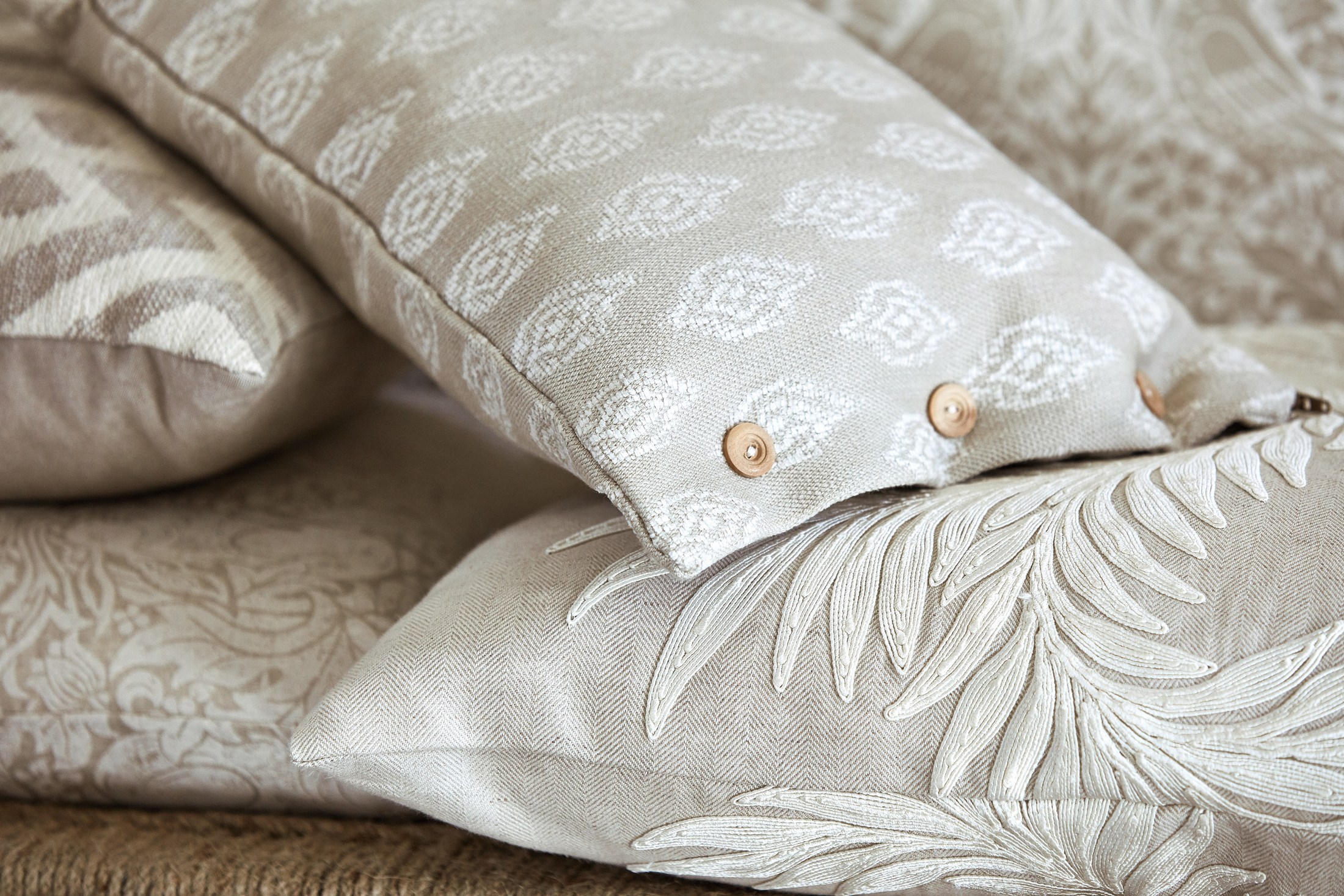Эта потрясающая коллекция состоит из трех каталогов и включает в себя пять набивных тканей, шесть вышивок, 12 тканых полотен и 10 видов обоев.