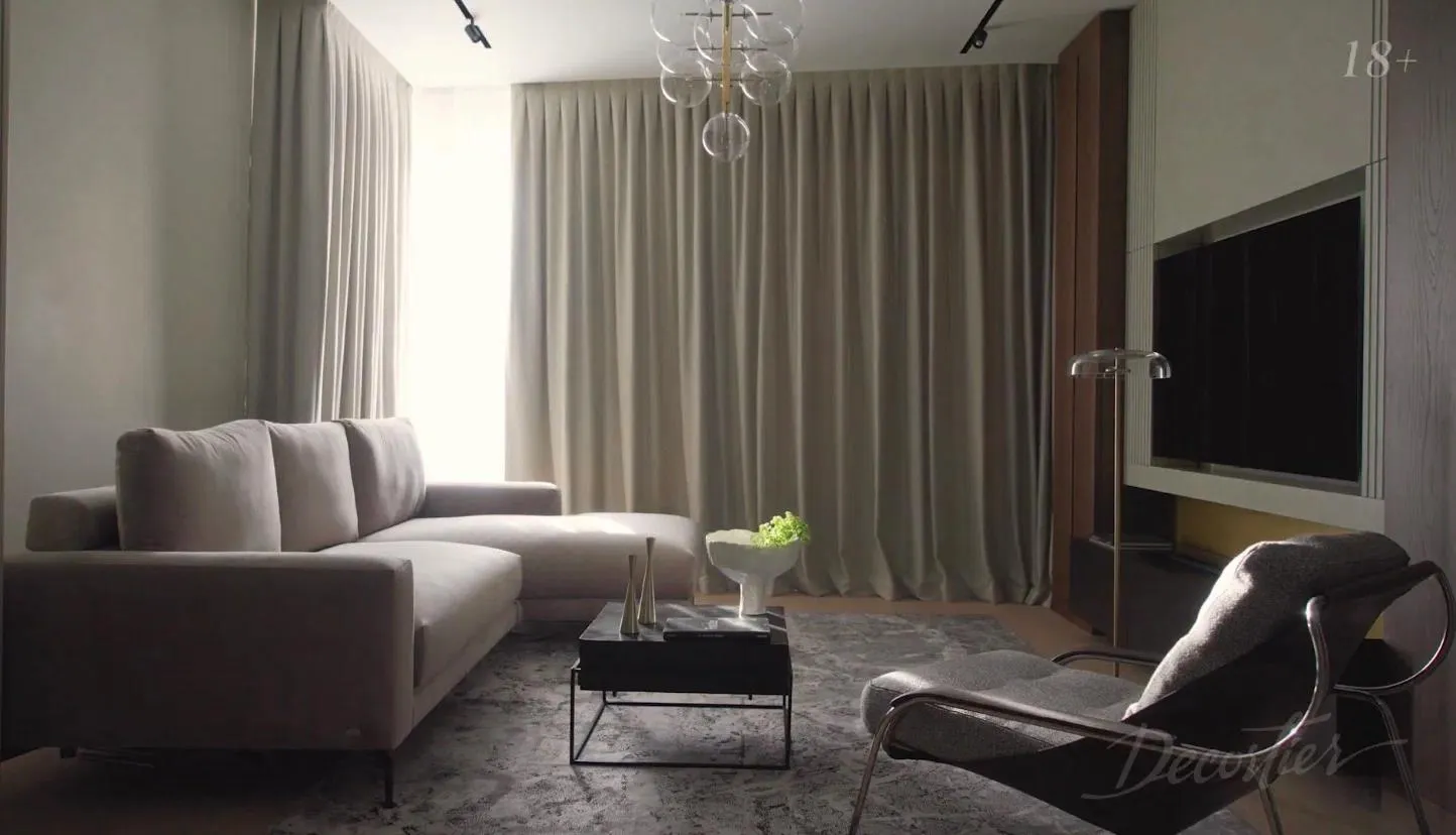 Дизайнер подберёт оптимальный вариант портьер точно под высоту потолков, особенности интерьера и, конечно, площадь комнаты.