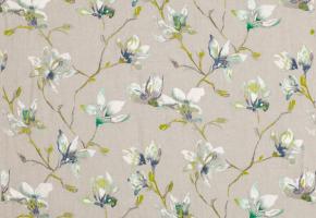 Натуральная ткань на светонепроницаемой подкладке blackout на карнизе с электроприводом, который управляется системой "умный дом".